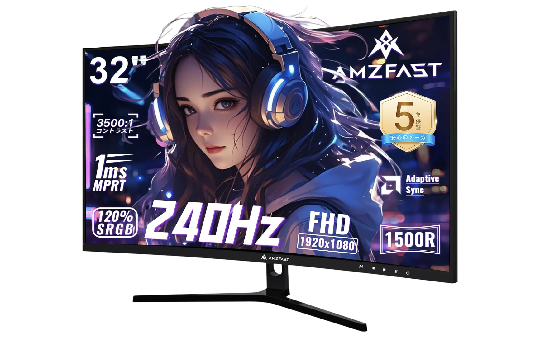 Amzfast 32インチ湾曲ゲーミングモニターは、240Hz・1ms応答・5年保証という組み合わせで、ゲーミングだけでなくAI活用のマルチタスク作業にも最適な選択肢です。