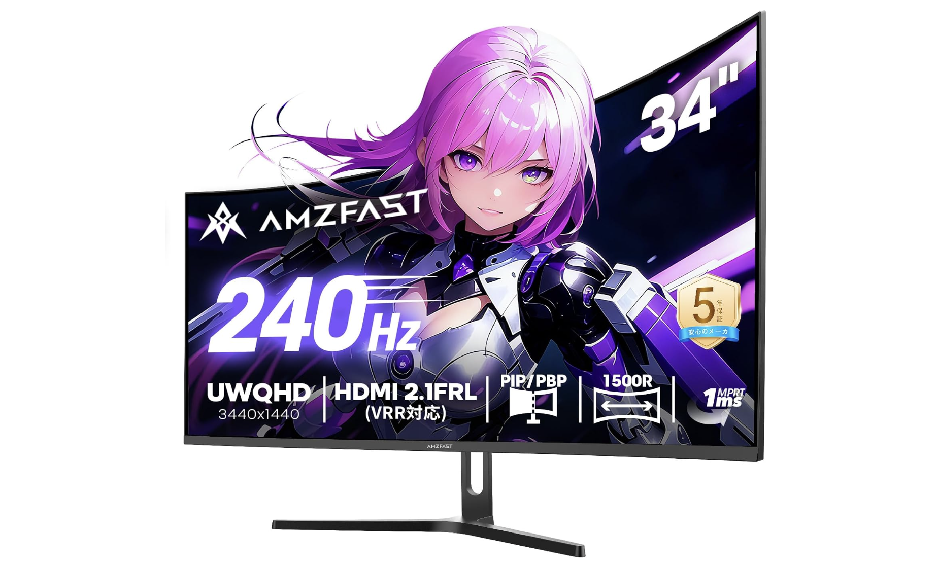 Amzfast 34インチゲーミングモニター240Hz|AI時代のウルトラワイド曲面ディスプレイで生産性とゲーム体験を革新