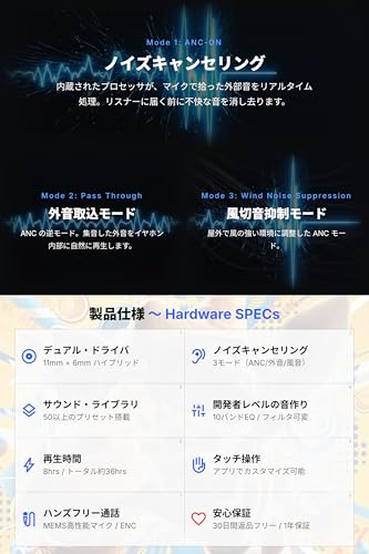 コストパフォーマンスを重視する人 限られた予算の中で、機能性の高いイヤホンを探している人。この価格でサウンドメイク機能と3モードANCを搭載している製品は他に見当たらない。