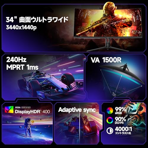 KOORUI 34インチ240Hz湾曲ゲーミングモニター G3441XCは、以下の価値を提供します: