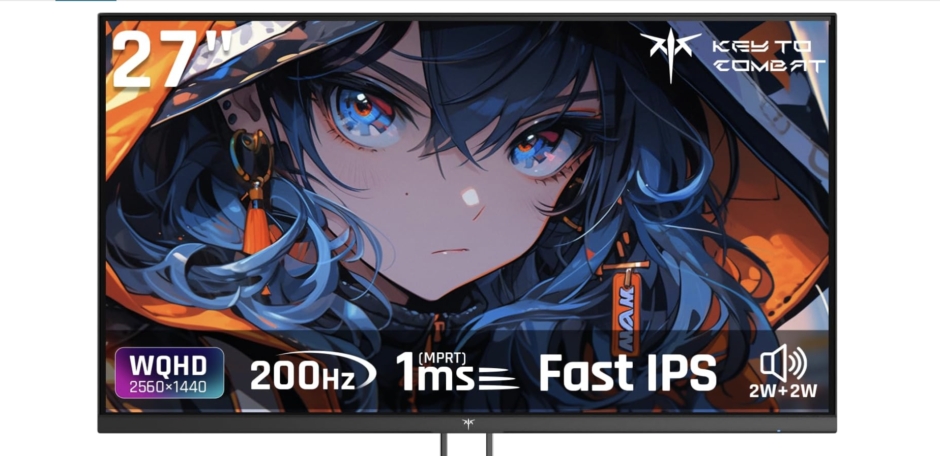 Amazon.co.jp: KTC 27インチゲーミングモニター WQHD (2560x1440) Fast IPS 200Hz (210OC可能)1ms(MPRT) 131%sRGB HDR400 低ブルーライト フリッカーフリー Fre...