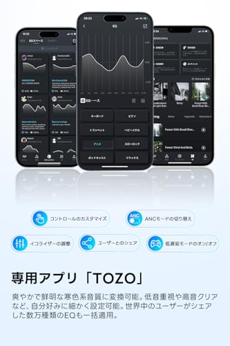 専用アプリによる詳細なカスタマイズ機能も魅力で、自分だけの最適なリスニング環境を作り出すことができます。価格以上の価値を提供するTOZO NC9は、音楽を愛する全ての方におすすめできる完全ワイヤレスイヤホンです。