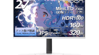 INNOCN GA27V1M 27インチ4Kゲーミングモニターの魅力を徹底解説。2304ゾーンMini LED、4K@160Hz/FHD@320Hz切替、Type-C 90W給電搭載。ChatGPT・Midjourney等のAI作業からゲーミングまで一台で完結。DCI-P3 99%の広色域で正確な色再現を実現。AI時代のクリエイター・ゲーマー必見の次世代ディスプレイ。