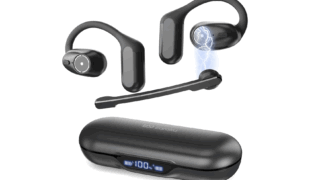 Earaku MicCuffは、耳を塞がないオープンイヤー型のBluetoothヘッドセット。脱着式マイクとENCノイズキャンセリング、ミュート機能で通話品質を向上。片耳・両耳対応、Bluetooth 5.4・長時間再生で在宅勤務やオンライン会議、AI文字起こし・翻訳にも最適。